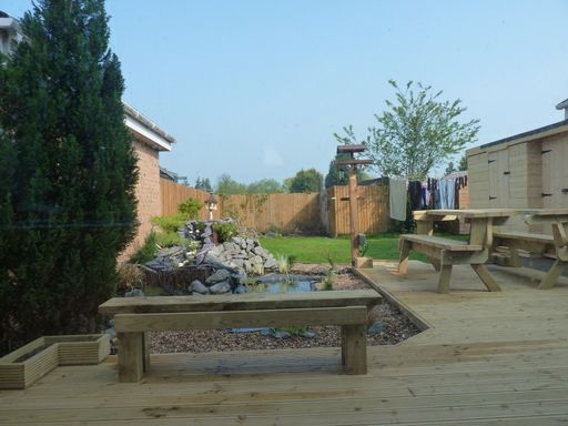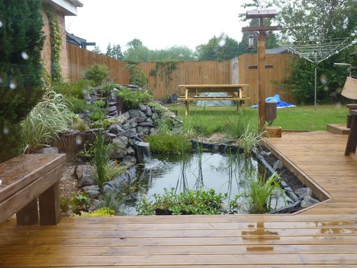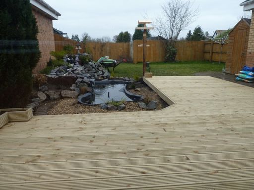 - Surrounding decking in durable, weather-resistant timber that frames the pond beautifully, creating a seamless, elevated viewing platform and easy access for maintenance and enjoyment.